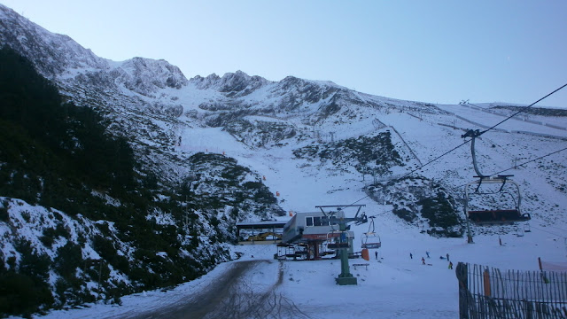 DEJAMOS ATRAS EL GRAN PLATO Y SEGUIMOS SUBIENDO POR LA PISTA DE SKI, AHORA VACIA
